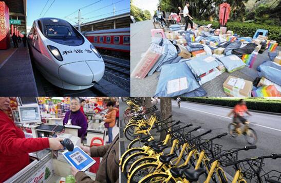 如果說(shuō)高鐵是中國(guó)人織就的聯(lián)通中國(guó)各地、聯(lián)通中國(guó)與世界的一張有形的網(wǎng),那網(wǎng)購(gòu)則是中國(guó)人締造的聯(lián)通中國(guó)各地、聯(lián)通世界每個(gè)角落的一張無(wú)形的網(wǎng)。支付寶則是全球生產(chǎn)者、經(jīng)營(yíng)者和消費(fèi)者,超越地緣限制在這張無(wú)形的網(wǎng)上輕松交易的金融血脈。共享單車就是解決“最后一公里”難題的健身“小伙伴”。