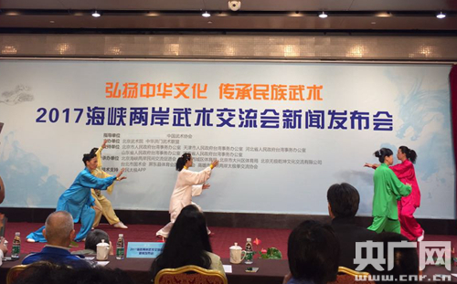 據(jù)了解,以“弘揚中華文化 傳承民族武術(shù)”為主題的“2017海峽兩岸武術(shù)交流會”將于今年12月2日至3日在北京舉辦。