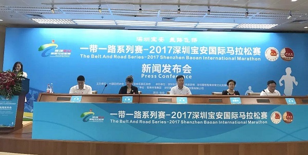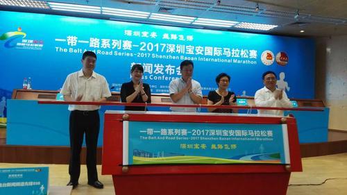 國家體育總局田徑管理中心馬拉松辦公室主任水濤、寶安區(qū)人民政府副區(qū)長梁敏華、寶安區(qū)委宣傳部常務(wù)副部長王曦、寶安區(qū)文體旅游局副局長盧清、智美體育集團(tuán)高級(jí)副總裁、深圳賽格智美總經(jīng)理沈偉以及特邀跑團(tuán)代表、寶馬組委會(huì)各職能單位代表共同出席了20日的新聞發(fā)布會(huì)。2017深圳寶安國際馬拉松賽是由中國田徑協(xié)會(huì)、深圳市寶安區(qū)委區(qū)政府共同主辦,深圳市寶安區(qū)文體旅游局、深圳賽格智美體育文化發(fā)展有限公司聯(lián)合承辦。
