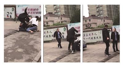 從監(jiān)控視頻中,揚(yáng)子晚報(bào)記者看到,電動(dòng)車還未停穩(wěn),黑衣男子便沖了上來,拿著尖刀直接往藍(lán)衣男子的腹部插去,連續(xù)刺了四五刀后,藍(lán)衣男子便隨著電瓶車倒地,一旁拉架的白衣女子也被帶倒,但黑衣男子還是拿刀亂刺,倒地的男子強(qiáng)打精神爬起來往遠(yuǎn)處逃,但是黑衣持刀男子緊隨其后,藍(lán)衣男子又被再一次帶倒。這時(shí),駕駛私家車的女輔警立即下車,衣服還沒扣好便沖過去了。