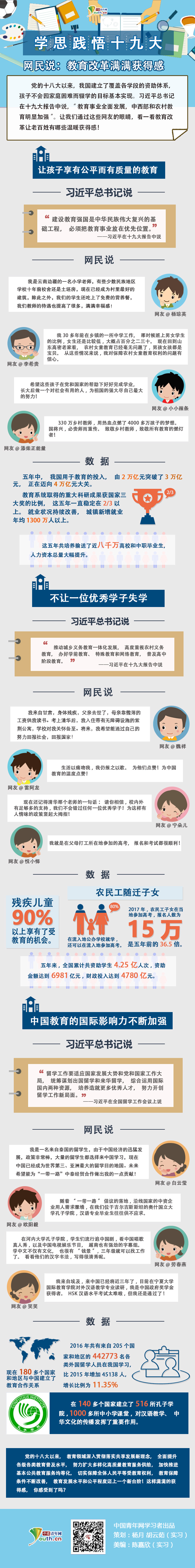 中國青年網(wǎng)北京12月7日電(記者 楊月 實習記者 胡云茹 陳嘉欣)黨的十八大以來,我國建立了覆蓋各學段的資助體系,孩子不會因家庭困難而輟學的目標基本實現(xiàn)。習近平總書記在十九大報告中說,“教育事業(yè)全面發(fā)展,中西部和農(nóng)村教育明顯加強”。讓我們通過這些網(wǎng)友的眼睛,看一看教育改革讓老百姓有哪些溫暖獲得感!