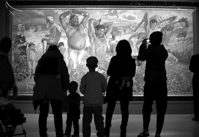 2月19日,在中國(guó)美術(shù)館“民族與時(shí)代——徐悲鴻主題創(chuàng)作大展”現(xiàn)場(chǎng),觀眾在經(jīng)典畫(huà)作前駐足觀看。 記者 饒強(qiáng)攝