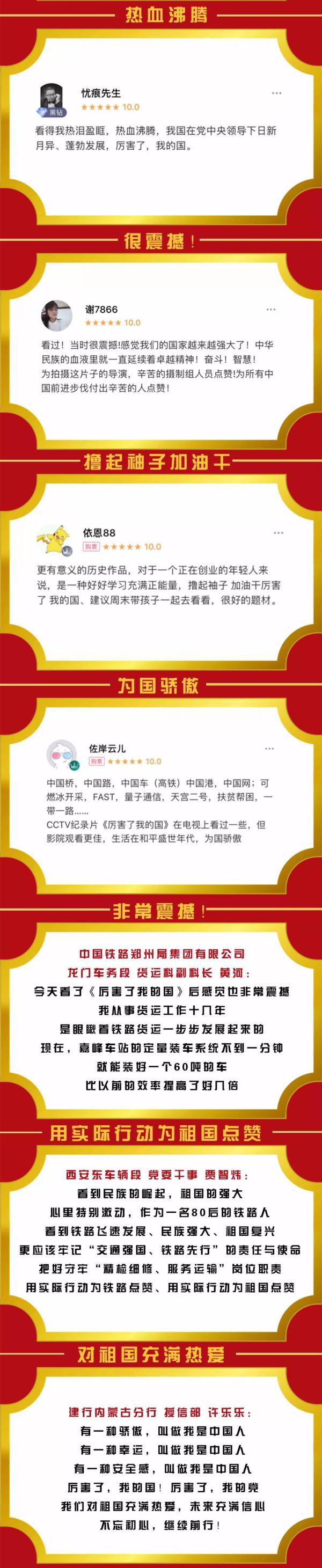 “‘我的國(guó)’成就‘我的家’,‘我的家’推動(dòng)‘我的國(guó)’!标兾魇”kU(xiǎn)行業(yè)協(xié)會(huì)辦公室主任帖炳楠看過電影,深有感觸:人民生活的興旺離不開國(guó)家的繁榮富強(qiáng),國(guó)家每一項(xiàng)重大進(jìn)展也凝聚了全國(guó)人民的磅礴力量。
