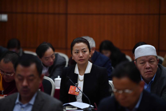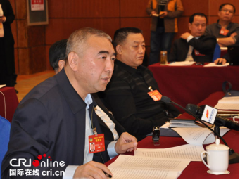 圖為新疆維吾爾族全國政協(xié)委員伊爾扎提·扎達(dá)在民族界別小組討論上發(fā)言。來源:國際在線