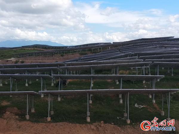光明網(wǎng)梅州6月26日電(記者 孫滿桃)在廣東梅州五華縣橫陂鎮(zhèn)和河?xùn)|鎮(zhèn)交界處的山頭,大面積的光伏板覆蓋在起伏的山地上,太陽能源源不斷地轉(zhuǎn)化為電能。這是目前廣東省裝機容量最大、扶貧資金規(guī)模最大的光伏扶貧項目。