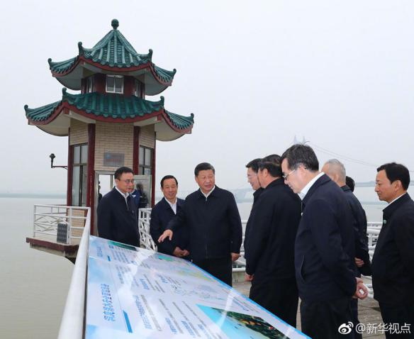 2018年4月25日,習(xí)近平考察被譽為洞庭湖及長江流域水情“晴雨表”的城陵磯水文站。圖片來源:新華社