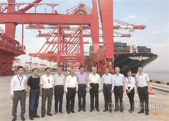 交通運(yùn)輸部老領(lǐng)導(dǎo)黃鎮(zhèn)東(左五)、王展意(左四)、林祖乙(右五)、劉松金(右四)、洪善祥(左三)、胡希捷(左二)、楊利民(右三)日前參加部離退休部長(zhǎng)黨支部活動(dòng),考察上海港洋山港區(qū)四期碼頭。特約記者黃京麗攝