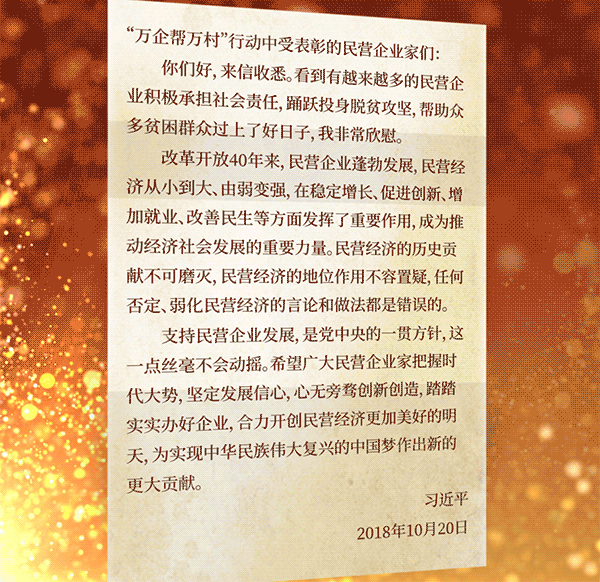 今年10月,習(xí)近平給“萬(wàn)企幫萬(wàn)村”行動(dòng)中受表彰民營(yíng)企業(yè)家的一封回信引起社會(huì)各界熱議。
