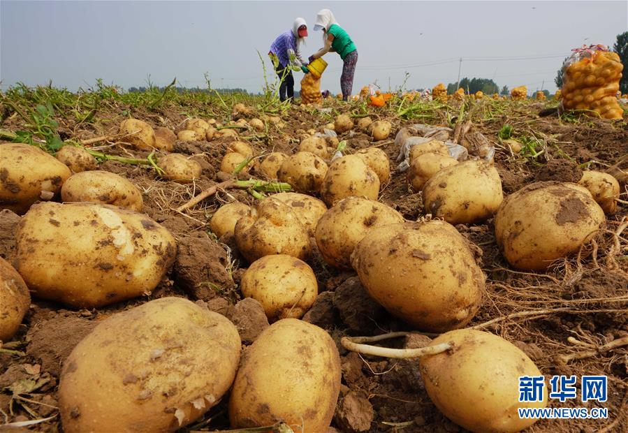 河北省灤南縣胡各莊鎮(zhèn)西梁各莊村的農(nóng)民在收獲馬鈴薯(7月4日攝)。 新華社記者 楊世堯 攝
