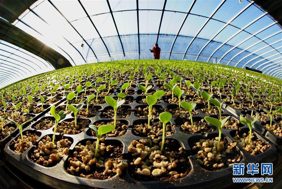 河北省樂亭縣樂亭鎮(zhèn)一家現(xiàn)代農(nóng)業(yè)園區(qū)的工人在育苗大棚內(nèi)工作(12月12日攝)。新華社記者 楊世堯 攝