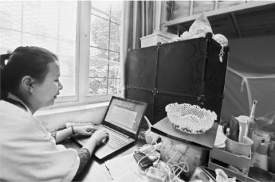 7日下午,黃鶯在使用筆記本電腦長江日報記者李子云 攝