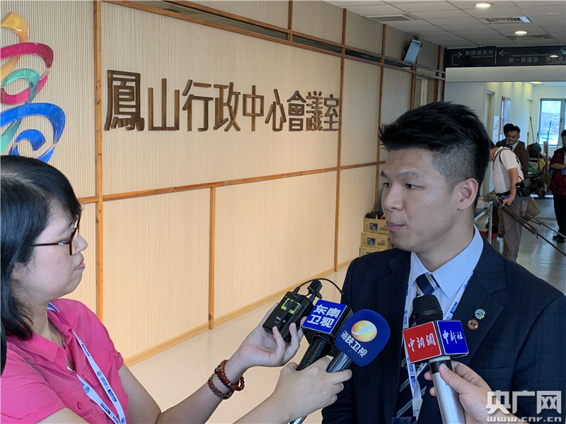 澳門中華青年商會(huì)會(huì)長譚鎧承接受媒體專訪。(央廣記者 張希達(dá) 攝)