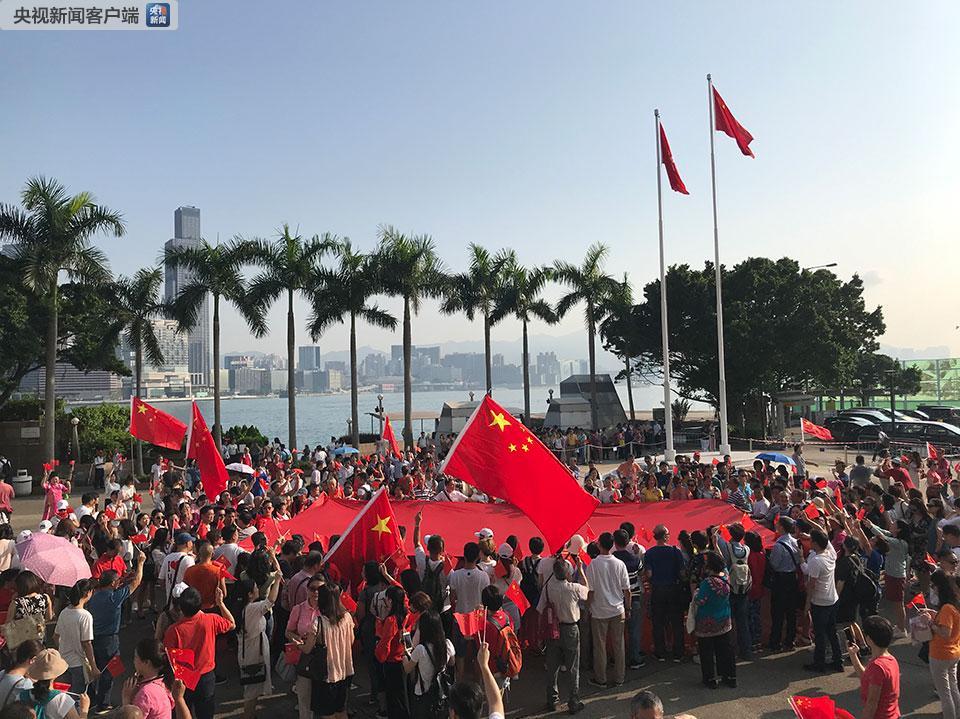本次升旗儀式由香港升旗隊總會支持,現(xiàn)場有逾千名普通市民和愛國愛港社團自發(fā)前往觀禮。