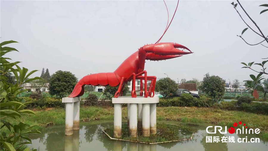 盤龍嶺村的小龍蝦雕塑。 攝影 程亞惠