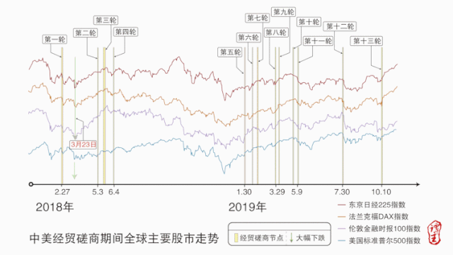 譚主曾經(jīng)請(qǐng)一位做資本市場(chǎng)研究的朋友,畫(huà)了一張全球股市的“心電圖”,中美之間每一輪高級(jí)別磋商,全球股市的“心跳“都會(huì)隨之而動(dòng)。
