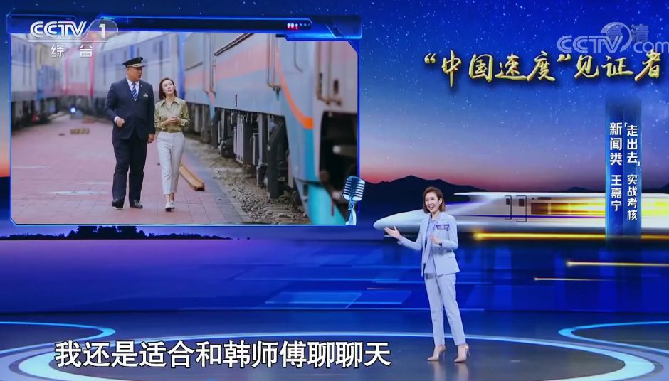 為了更好地了解韓師傅的工作,在高鐵模擬倉(cāng)里,王嘉寧體驗(yàn)了一次“手忙腳亂”的高鐵駕駛。在與韓師傅的交流中,王嘉寧讀懂了他對(duì)這份事業(yè)的熱愛,他錯(cuò)過了與愛人的青春和孩子的童年,甚至曾錯(cuò)過與至親最后的陪伴。