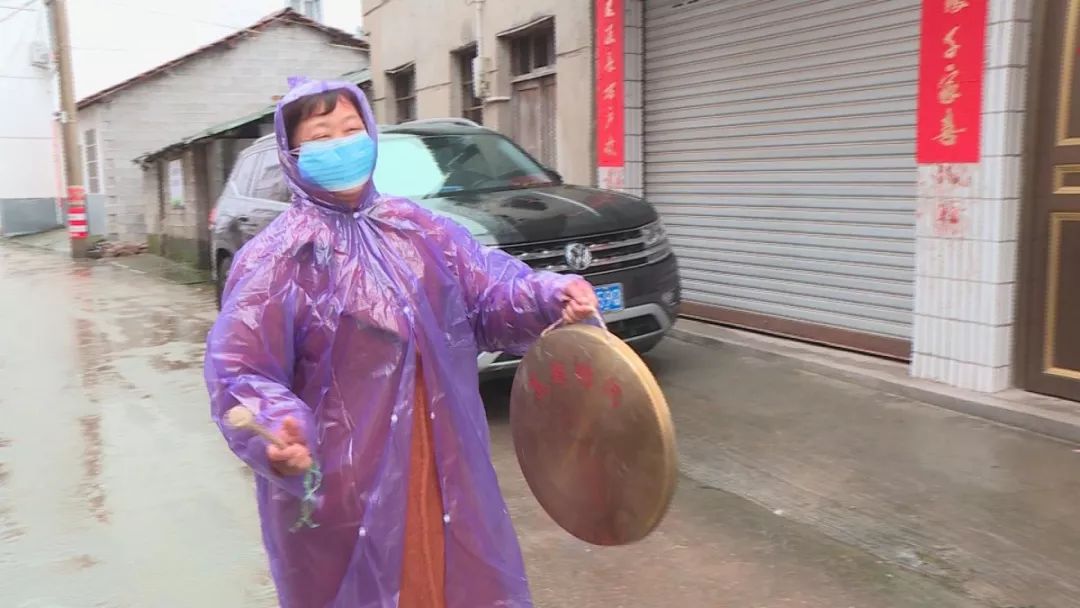 一大早,碧湖鎮(zhèn)缸窯村村監(jiān)會主任夏蓮嬌就手拎銅鑼,將防疫知識通過方言喊村的方式,宣傳到村里的家家戶戶。