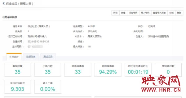 節(jié)后返鄭人員呈現(xiàn)動(dòng)態(tài)化增長(zhǎng),截至目前,街道已排查出省外及省內(nèi)重點(diǎn)疫區(qū)返鄭人員775人,省內(nèi)其他地區(qū)返鄭人員448人,通過AI人工智能外呼平臺(tái)操作,對(duì)居家隔離人員是否在家、體溫狀況、身體癥狀、隔離期限進(jìn)行確認(rèn),街道每日僅需1小時(shí)即可完成對(duì)所有居家隔離人員電話監(jiān)測(cè),少量占線、無人接聽等情況再由人工逐一聯(lián)系,隔離人員健康狀況可以及時(shí)反饋給社區(qū),大大提高了工作效率。