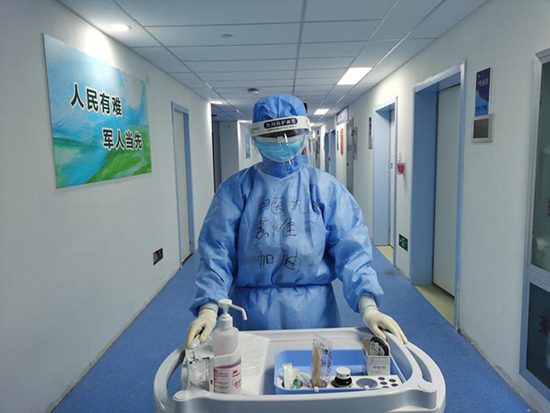 在病區(qū),我們是戰(zhàn)斗員、醫(yī)護員、信息員、監(jiān)督員、勤務員、清潔員、轉(zhuǎn)運員,披著鎧甲我無所不能。