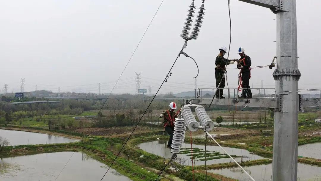 湖北武漢黃金口220千伏變電站110千伏配套工程也于24日開始施工。早上6點,在現(xiàn)場設(shè)立的臨時指揮部里,施工人員要經(jīng)過一道“門”——進行體溫測量和消毒。在一系列工前安全措施后,施工人員分別登上漢蔡高速匝道旁5基24米高的輸電鐵塔,有條不紊地進行驗電、掛接地線、解除跳線、放置滑車,最后拆除1560米長導線。