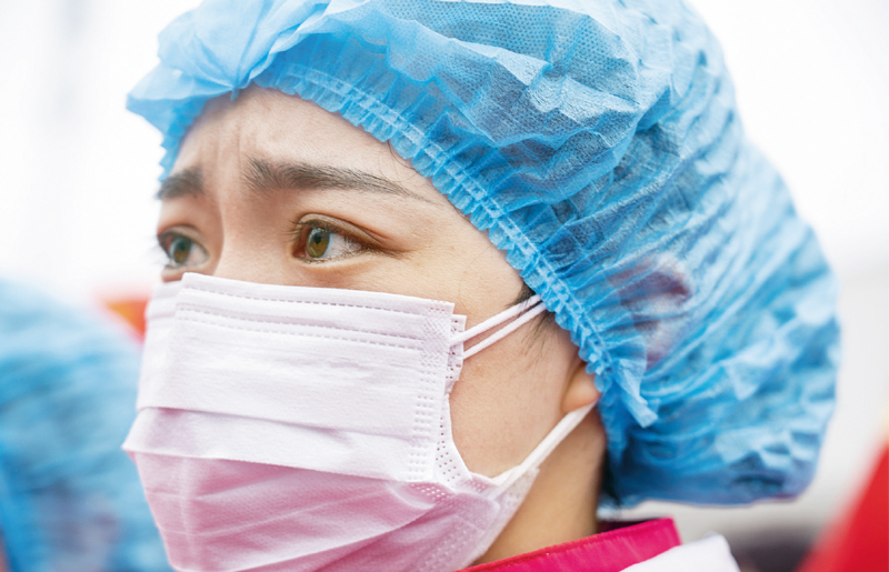 2020年3月29日,在武漢雷神山醫(yī)院舉行的集中撤離儀式上,來自大連醫(yī)科大學附屬第一醫(yī)院的護士熱淚盈眶。當日,武漢雷神山醫(yī)院舉行首批外省醫(yī)療隊集中撤離儀式,送別即將踏上歸途的遼寧、上海、吉林、廣東、山西、河北醫(yī)療隊的1090名醫(yī)護人員。 新華社記者 才揚/攝