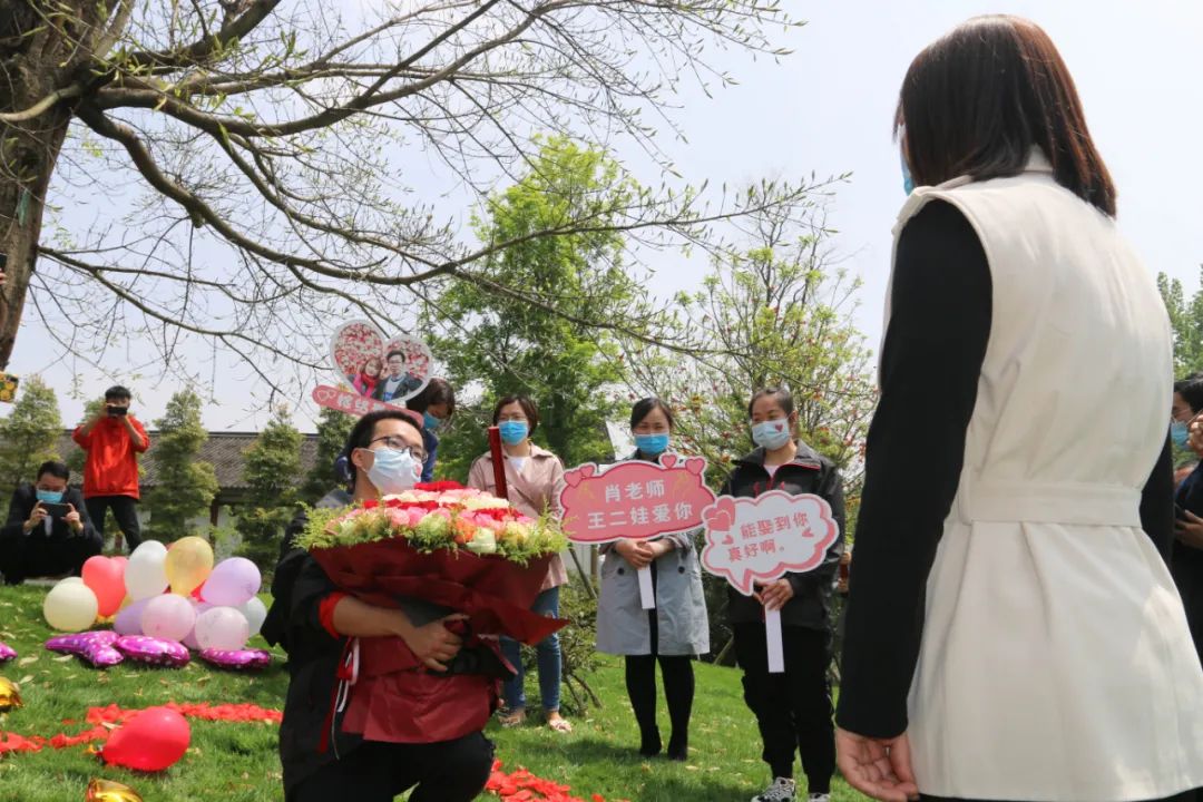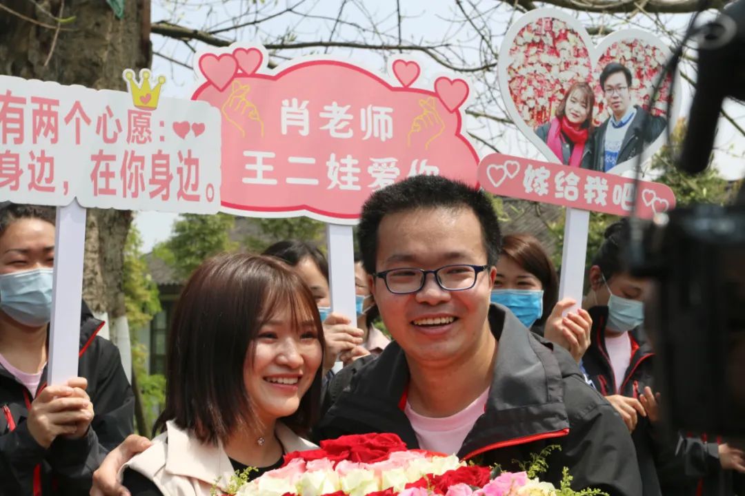 成都醫(yī)學(xué)院第一附屬醫(yī)院重癥醫(yī)學(xué)科男護(hù)士、四川省第三批援湖北醫(yī)療隊(duì)隊(duì)員王旭濤返回四川隔離期滿后第一時(shí)間向護(hù)士女友肖雪梅求婚(4月14日攝)。新華社發(fā)