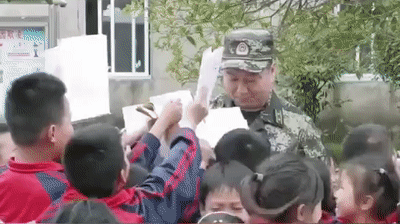 開心地向特戰(zhàn)隊(duì)員揮手加油