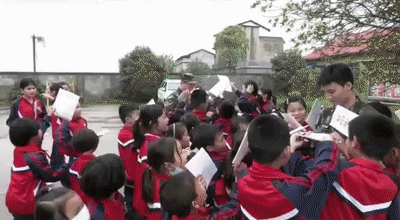 被小學(xué)生們團(tuán)團(tuán)圍住要簽名