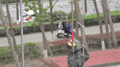 特戰(zhàn)隊(duì)員正在進(jìn)行爬繩訓(xùn)練