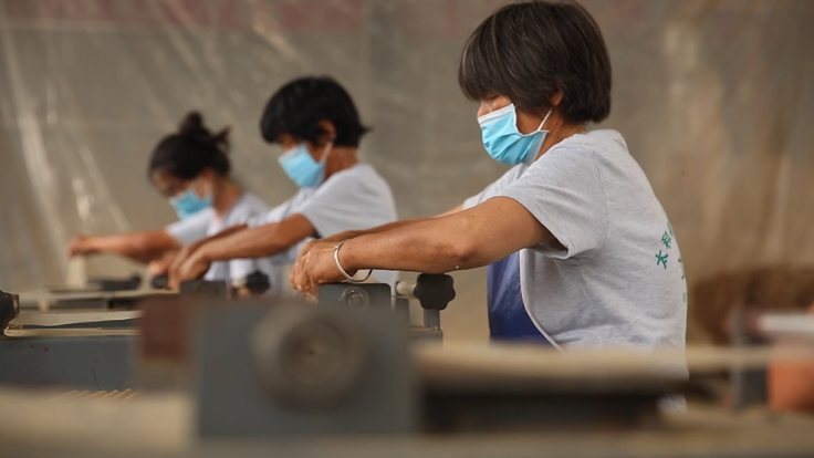 夫妻倆沒有放棄,通過不斷“取經”,發(fā)現(xiàn)艾草加工的利潤很好。于是他們一邊堅持種艾草,一邊在政府的支持下,辦起村里艾草加工的扶貧車間。
