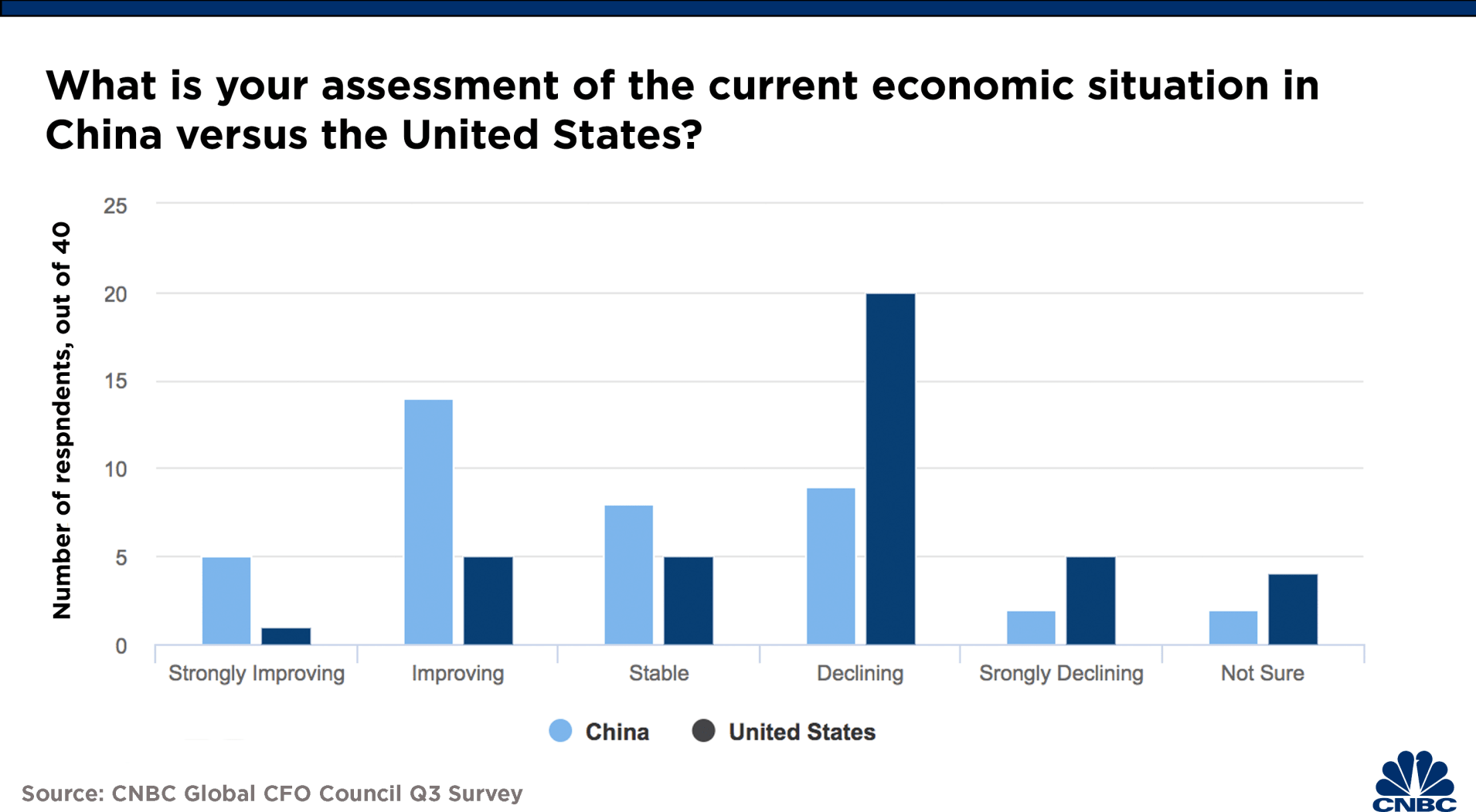 △全球首席財(cái)務(wù)官對(duì)當(dāng)前中美經(jīng)濟(jì)的評(píng)價(jià)(圖片來源:CNBC)