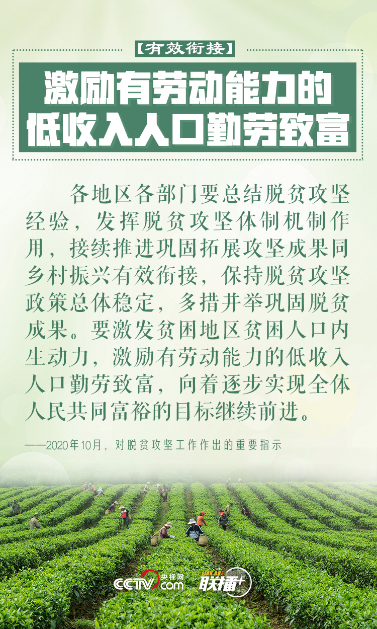 聯(lián)播+ 日前召開的中央經(jīng)濟(jì)工作會議提出,要鞏固拓展脫貧攻堅(jiān)成果,堅(jiān)決防止發(fā)生規(guī)模性返貧現(xiàn)象。要做好同鄉(xiāng)村振興的有效銜接,幫扶政策保持總體穩(wěn)定,分類調(diào)整優(yōu)化,留足政策過渡期。