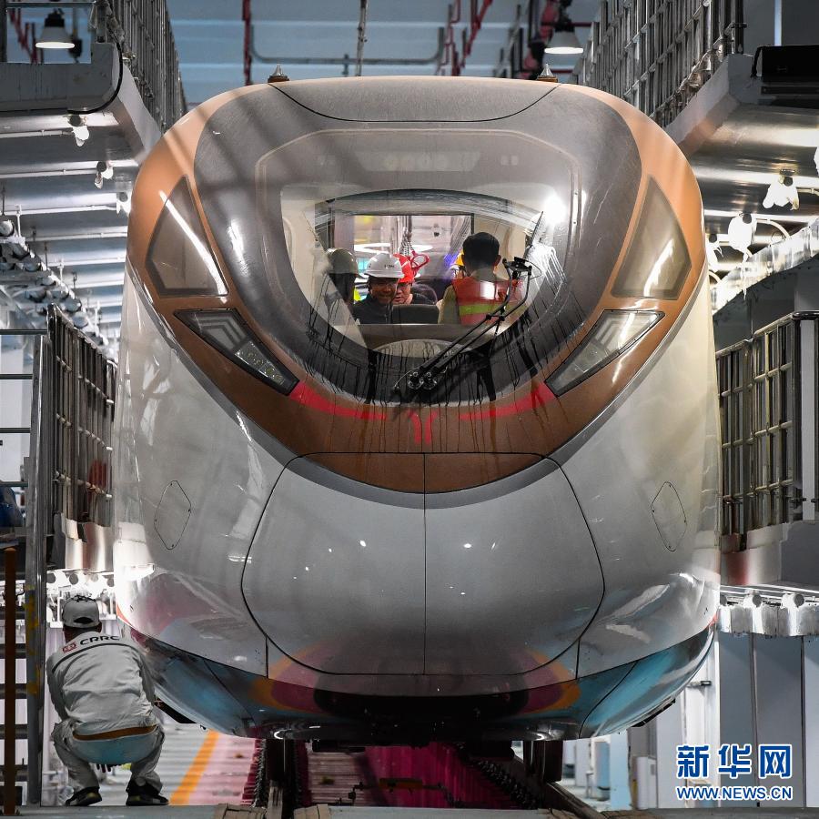 參加熱滑試驗的技術(shù)人員對廣州地鐵18號線時速160公里電客車進行發(fā)車前最后一次設(shè)備狀況查驗(3月3日攝)。新華社記者 劉大偉 攝