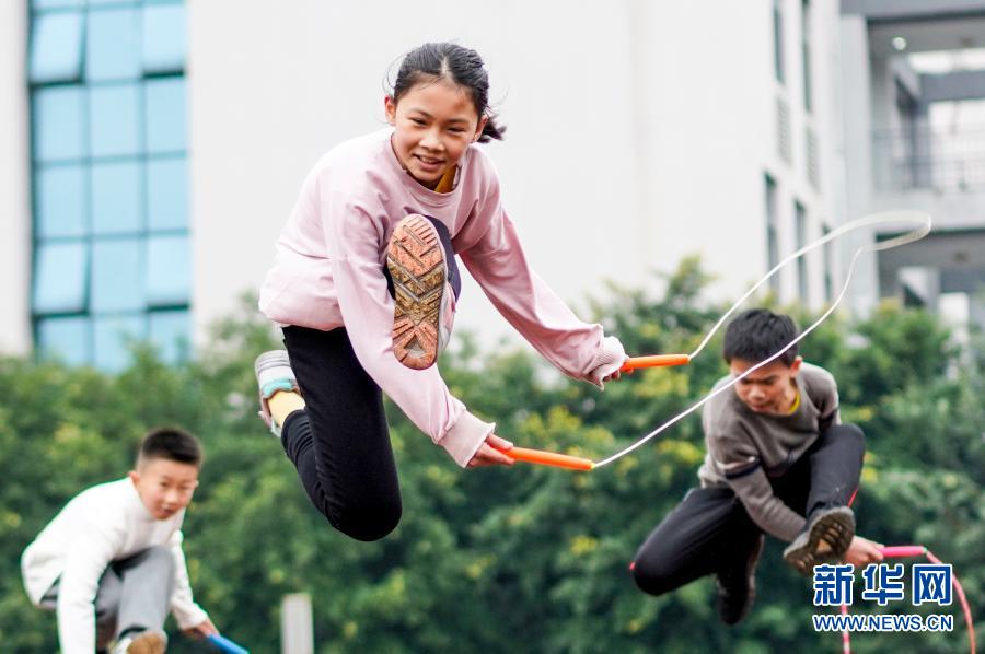 2020年12月9日,重慶市九龍坡區(qū)西彭鎮(zhèn)第一小學(xué)校跳繩隊隊員在進行花樣跳繩訓(xùn)練。該校從1999年開始引進跳繩,開展特色體育活動。新華社記者 劉潺 攝