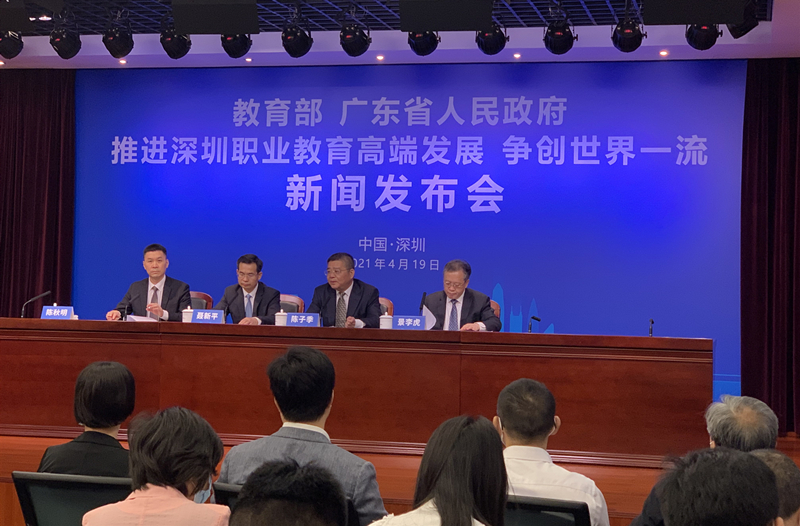 央廣網(wǎng)深圳4月19日消息(記者黃倩)教育部、廣東省人民政府推進深圳職業(yè)教育高端發(fā)展、爭創(chuàng)世界一流新聞發(fā)布會19日在深圳市政府新聞發(fā)布廳舉行。記者獲悉,教育部、廣東省人民政府共計提出13項政策支持深圳建設(shè)職業(yè)教育創(chuàng)新發(fā)展高地。