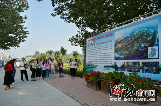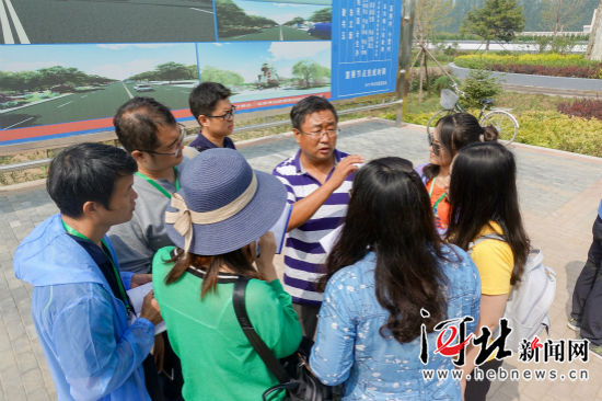 圖為采訪團在高碑店清河灣生態(tài)康養(yǎng)小鎮(zhèn)參觀。攝影:趙杰