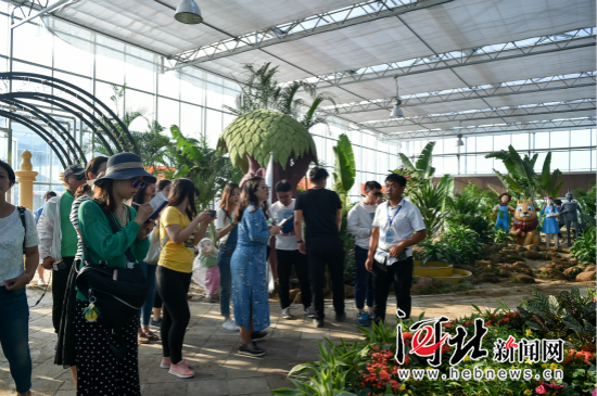 圖為采訪團在高碑店冀康現(xiàn)代農(nóng)業(yè)園參觀。攝影:趙杰