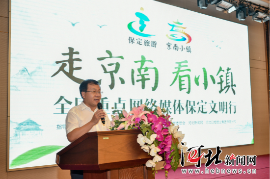 圖為高碑店市委常委、副市長張衛(wèi)強向采訪團介紹該市籌備首屆保定市旅發(fā)大會情況。攝影:趙杰