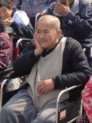 走進(jìn)大門(mén),就聽(tīng)到隱隱約約的歌聲,老人們已經(jīng)早早坐在院子里,聽(tīng)著蔡琴的《何日君再來(lái)》,享受著陽(yáng)光的溫暖。鶴童敬老院有100多位老人,大部分老人生活不能自理,院子里的老人都坐在輪椅上。