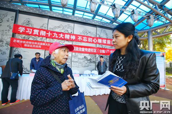 央廣網(wǎng)北京11月8日消息(記者孫濤 任曉宇)今日,北京市民政綜合執(zhí)法監(jiān)察大隊與海淀區(qū)民政局聯(lián)合開展了“民政法制宣傳進社區(qū)”活動,以擺放宣傳展板、發(fā)放宣傳材料和調(diào)查問卷以及接待群眾現(xiàn)場咨詢等方式,為社區(qū)居民第一時間傳達黨的十九大精神,普及民政法律知識。