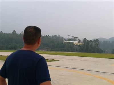 朱建軍昨日在路正航空公司考察直升機(jī)