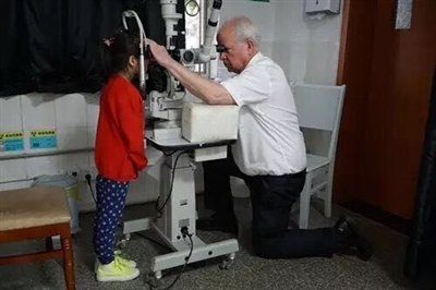 星星只有1.1米高,Peter教授比他高出很多,“檢查時(shí),教授突然推開椅子,單膝跪地給娃娃檢查,我很震驚,也很感動(dòng)。”星星媽媽立即拿出手機(jī)拍下這感人一幕!爱(dāng)時(shí)覺得Peter特別認(rèn)真負(fù)責(zé),這么大年紀(jì)還不辭辛勞為孩子們義診!