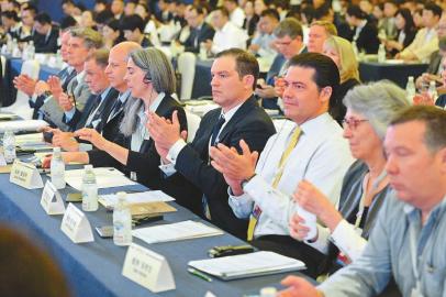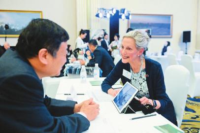 相聚 第四屆中美省州長論壇上,兩國各地嘉賓相聚成都。本版圖片由 本報(bào)記者 郝飛 攝