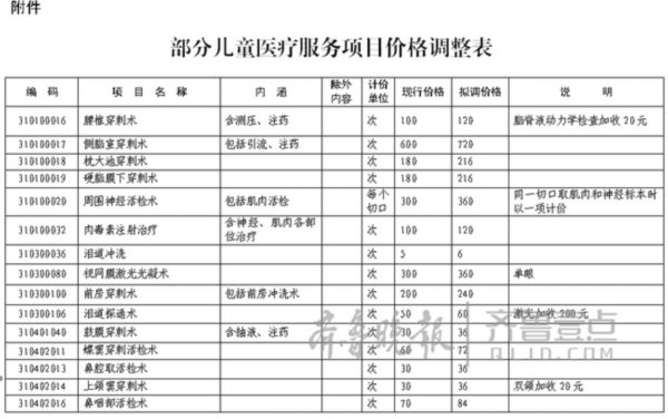 記者從煙臺市物價部門了解到,根據(jù)《關(guān)于印發(fā)〈貫徹國衛(wèi)醫(yī)發(fā)〔2016〕21號文件加強(qiáng)兒童醫(yī)療衛(wèi)生服務(wù)改革與發(fā)展工作方案〉的通知》(魯衛(wèi)醫(yī)字〔2016〕31號)的要求,煙臺市調(diào)整部分兒童醫(yī)療服務(wù)價格。6歲(含)以下兒童手術(shù)價格,在現(xiàn)行價格基礎(chǔ)上提高20%。6歲(含)以下兒童一般治療操作、有創(chuàng)活檢、探查等項(xiàng)目價格,在現(xiàn)行價格基礎(chǔ)上加收20%。