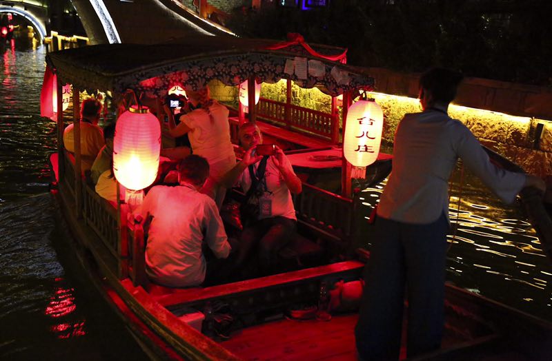 央廣網(wǎng)棗莊8月13日消息 10日,由全球40多個國家的150余名攝影師組成的世界攝影大會采風團抵達臺兒莊古城。世界攝影大會采風團對臺兒莊古城夜景的拍攝。從西門出發(fā)到達參將署、至尊橋、船形街、遠波橋、月河街、郁家碼頭、丁字街、復(fù)興廣場等標志性景點進行拍攝,攝影家們還乘坐烏篷船感受別樣的“小橋流水人家”。瓦青磚黛訴說著悠久的歷史,亭臺樓閣記載著動人的故事,雕梁畫棟承載著精湛的技藝,小橋流水清唱著動人的歌謠。