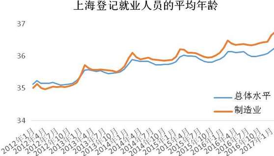 統(tǒng)計(jì)數(shù)據(jù)顯示,上海制造業(yè)登記就業(yè)人員的平均就業(yè)期限為30.4個(gè)月,與2012年同期相比上升8.6個(gè)月;平均年齡為36.7歲,比2012年同期高1.7歲,其中高學(xué)歷勞動(dòng)者越來越多。2017年3月,上海制造業(yè)登記就業(yè)人員中,大專以上學(xué)歷的約占23.0%,同比上升1.2個(gè)百分點(diǎn),與五年前同期水平相比上升5.8個(gè)百分點(diǎn)。