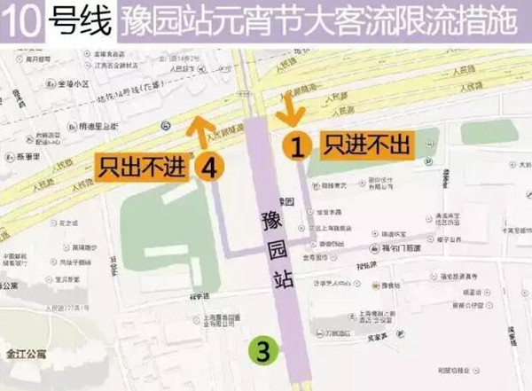 央廣網(wǎng)上海2月10日消息 據(jù)上海交通發(fā)布,明天元宵節(jié),如客流量過大,豫園站將采取限流措施,通往豫園的1號口只進不出,4號口則是只出不進(預(yù)計下午1時開始限流),單向進出,防止客流對沖。