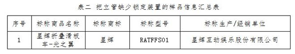 另有1件樣品把立管缺少鎖定裝置,5件樣品把立管強度不達標。把立管作為兒童直接控制滑板車的部件,除了可調(diào)節(jié)高度、控制方向外,還承受著兒童部分體重,在特殊情況下還會承受更大的沖擊力或壓力。為避免意外坍塌,把立管應(yīng)當有足夠的穩(wěn)定性和強度。標準要求,可調(diào)節(jié)高度的把立管如果不需要額外的工具調(diào)節(jié)高度,則至少要有兩個鎖定裝置,以防止高度的突然變化。測試中發(fā)現(xiàn),有1件樣品僅有一個自動鎖定裝置(見表二),沒有雙重鎖定。