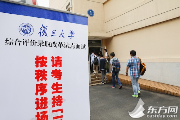 圖片說明:參加復(fù)旦大學(xué)綜合評(píng)價(jià)錄取改革試點(diǎn)校測(cè)面試的考生們正在有序進(jìn)場。慕梁攝