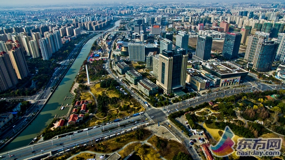 圖片說明:航拍的上海長(zhǎng)風(fēng)生態(tài)商務(wù)區(qū)。(鈕一新攝影)
